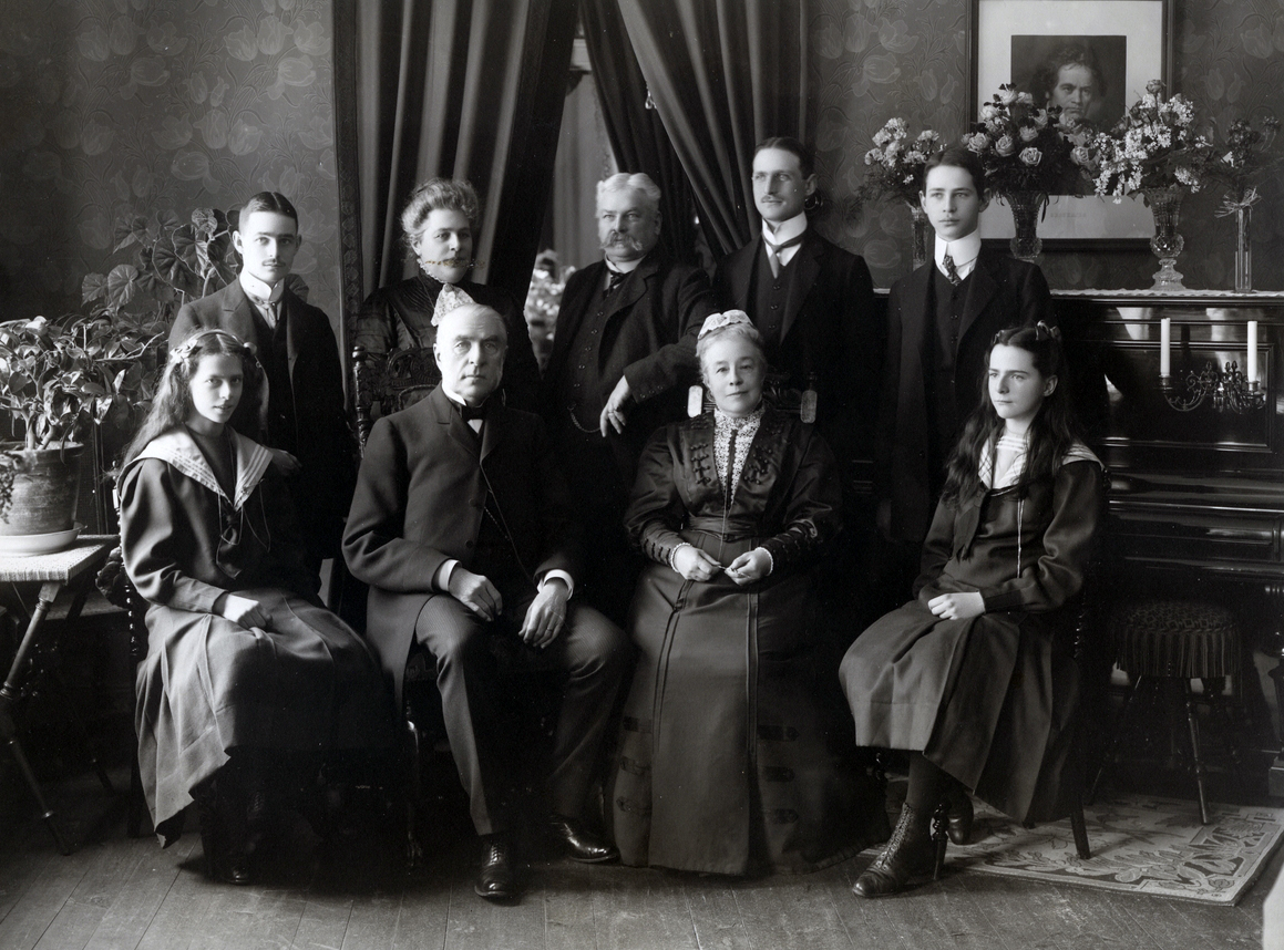 Övre raden från vänster: Skogstjänstemannen Carl Rudolf Silfverstolpe (1888-1970), fru Elsa Silfverstolpe (född Gagge, 1866-1947), kapten Carl Silfverstolpe (1854-1916), Gudmund Silfverstolpe (1886-1970) - senare överstelöjtnant samt längst till höger Gunnar Mascoll Silfverstolpe (1893-1942) - senare överintendent. Nedre raden från vänster: Dagmar Silfverstolpe, bankdirektör Rudolf Gagge (1834-1912), hans hustru Augusta Gagge (f. Sahlqvist, 1843-1931) samt Anna Silfverstolpe (1895-1949). Källa: Västmanlands läns museum.